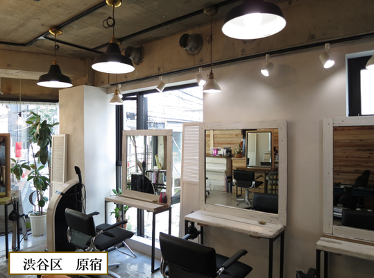 竹下通りを抜け明治通りを超え進むとお店が見えてきます。多くのスタイリストが迎えてくれるコジャレたお店です。