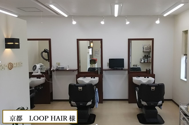 お顔に影の出ない柔らかな光、襟足まで見えてカラーリングの色味が正確に見えるLED照明を配置してオーナーの条件を満たしてオープンを迎えています。